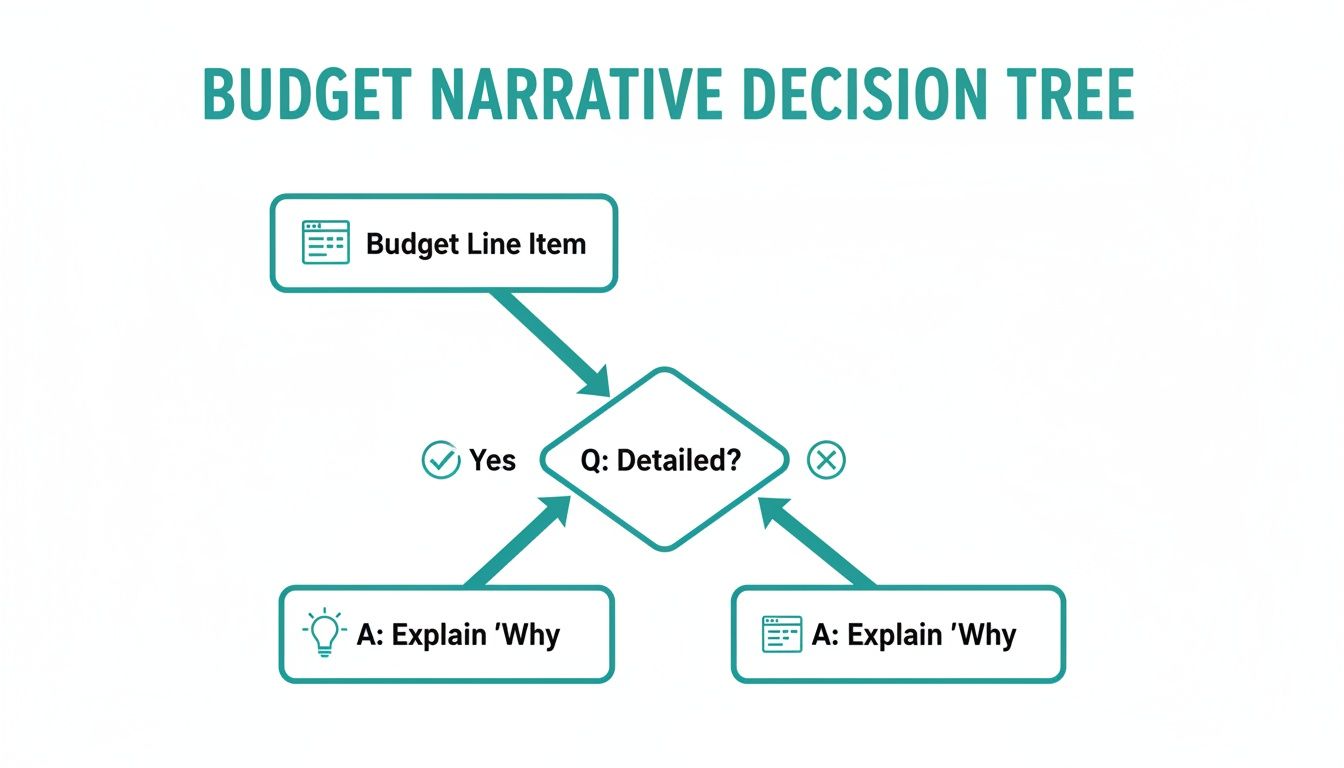 This simple chart shows how to justify each cost in your narrative. Every line item needs a "why" that connects it straight back to your project's goals.